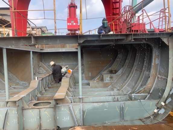 本瓦造船㈱(福山市鞆町後地242―1、本瓦誠社長)は、小型特殊船の建造・修繕において品質ナンバー1を目指し、高い技術力と信頼性で業界をリードしている。特に、国内を運航するケミカルタンカーや特殊船の建造を主力とし、年間8隻以上の船舶を建造。ケミカルタンカーは「動く化学プラント」とも呼ばれ、液体化学薬品などの危険物を運搬するために厳しい安全基準が要求される。本瓦造船では、これに応えるために自社の技術力と製造力を駆使し、品質管理を徹底している。これまでに通算約640隻、G/T5~749トンの船舶を手掛け、効率的な工場レイアウトと豊富な建造実績に裏打ちされた高い生産能力を誇る。