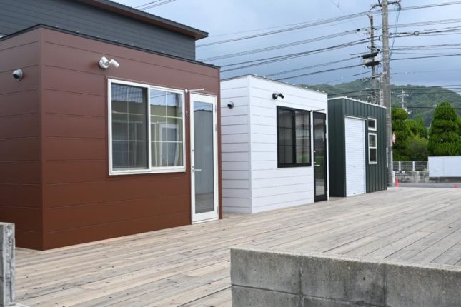 なゆた工務店㈱(府中市高木町61―2、臼井大輔社長、℡0847・44・9477)は、10月1日(水)、本社隣にシェアスペース・シェアキッチン「kinoe Try village」(同市高木町61―3)をオープンする=写真上。敷地内には、同社オリジナルの木造ユニット「kinoe」を使った、飲食店営業許可・菓子製造許可を取得済みのシェアキッチン3棟=写真下(店内)と、物販や教室に活用できるシェアスペース2棟を整備。いずれも月契約の曜日貸しとし、利用者を募集している。