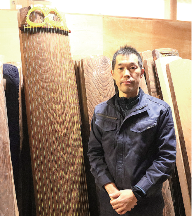 和楽器の製造・販売・修理まで一貫して対応する㈱三島屋楽器店。同社の起源は江戸時代にまでさかのぼり、創業以来の伝統と技術を守り続けてきた。福山工場では琴、和太鼓、三味線、尺八など現在4人の職人が製造や修理を手掛けている。職人の一人である中嶋和輝さんは「着物や和装の魅力に引かれ、関連する和楽器作りの道へと進みました。最盛期だった頃には1社に約300人の職人が在籍していた時代もあったそうですが、現在は業界の存続自体大変な状況となっています。福山は琴の産地として知られています。しかし、近年は触れる機会も減りました。そこでイベントに参加し実演体験で琴に触れてもらい、美しい音色を広く伝える取り組みしています。今年の10月には販路拡大を目指し、中国の展示会に出展しました。今後も和楽器の魅力を伝え、技術伝承にも力を入れていきたい」と語る。