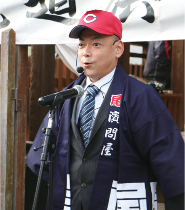 尾道市土堂の住吉神社境内で1月5日に開催された、尾道浜問屋(協)による新春恒例の初市。会員の海産物問屋が持ち回りで担当するせり人は今回、尾道塩干㈱の竹本周示さんが務めた。尾道は煮干し類の全国有数の集散地として知られ「尾道での相場が全国の相場を決める」といわれるほか、海産物を原料に使った食品加工業も盛ん。2025年はいりこ、ちりめんじゃこの原料であるカタクチイワシが一部を除き不漁で、品薄に悩まされたが、初市には会員各社が昨年より1割上回る総計約20・1tを出品。尾道商人の商売への意気込みを示した。せり実績額は昨年を2割上回る約5741万円となった。竹本さんは「入社22年で初めてせり人を務め、かなり緊張しました。商材がないと商売ができないので、品薄でも必要ならリスクがあっても買うが、できれば今年は豊漁であってほしい」と期待を語った。